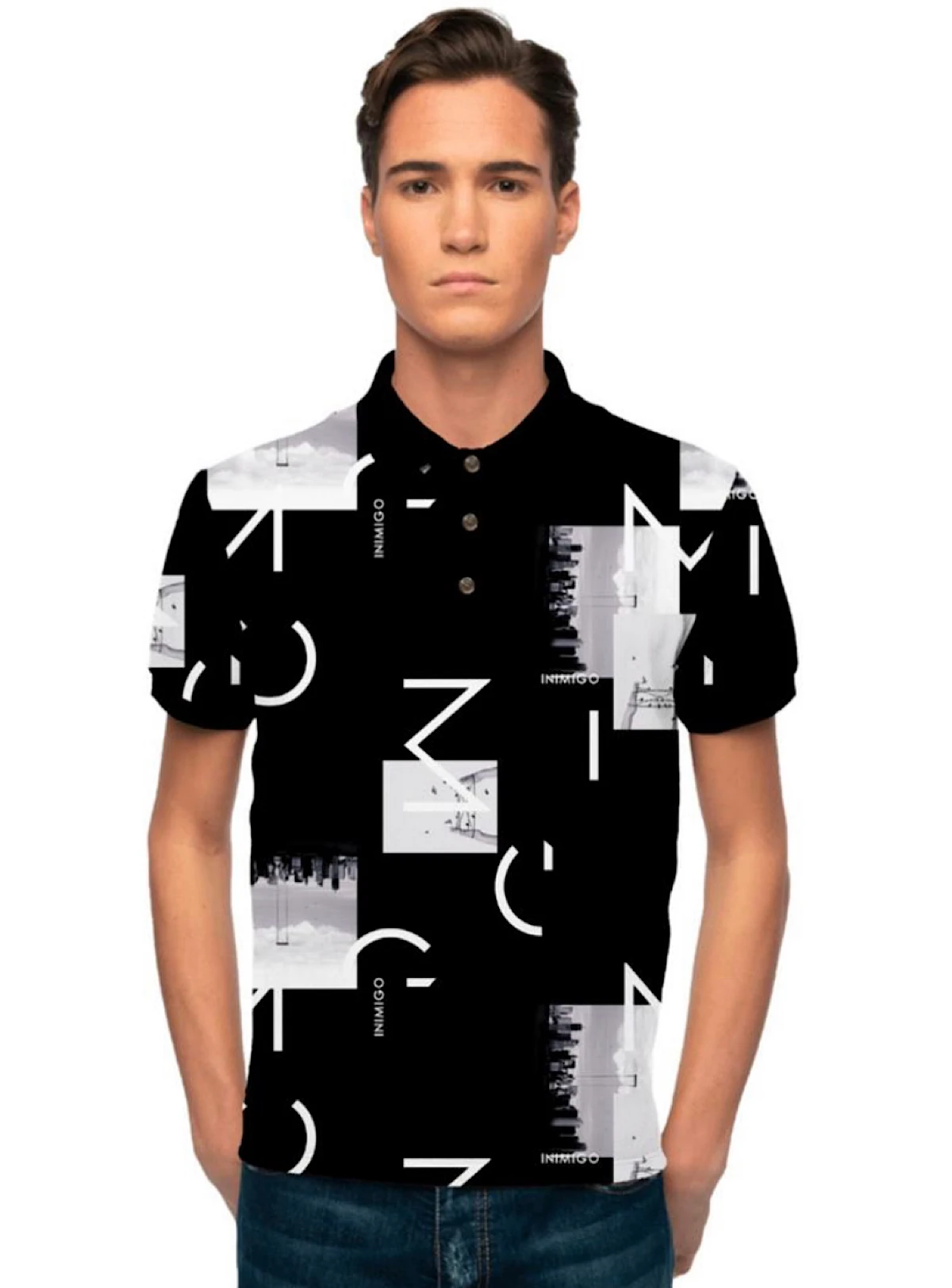 This Inimigo tee is inspired by the crazy 80s disco club parties for mystical celebrities and yuppies. This print is a combination between digital print and high-density. Article made in 100% Organic Cotton, with the INIMIGO logo engraved on a metal plaque and hand-stitched on back. A perfect fit, always with character.