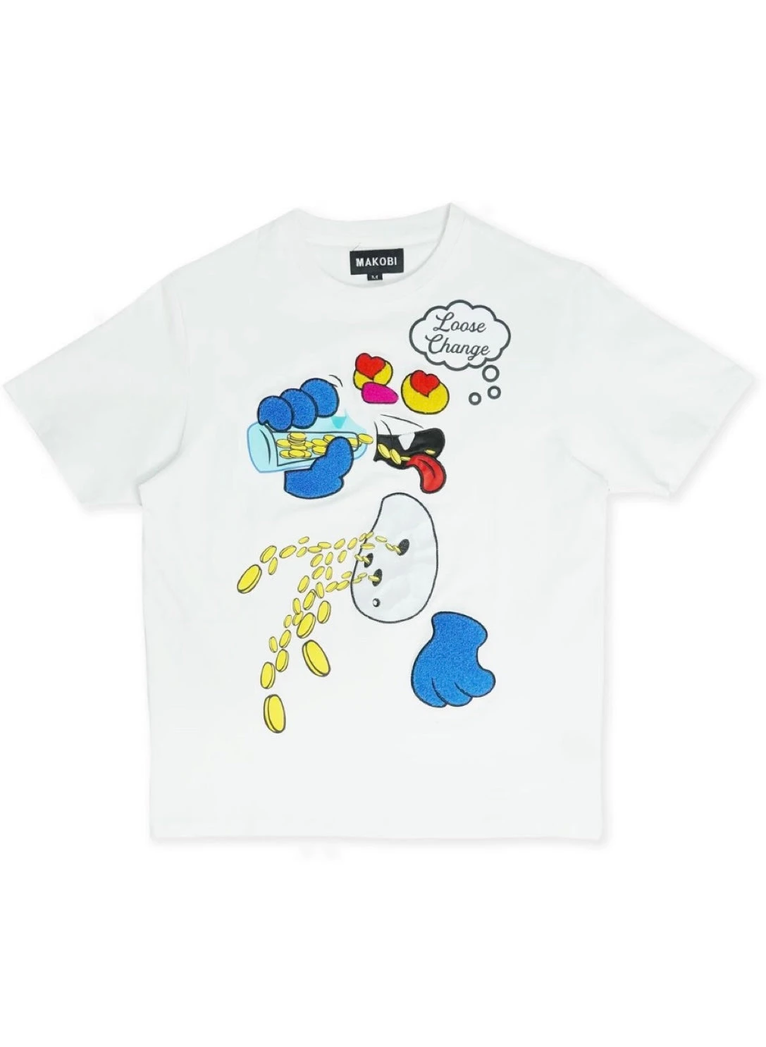 Be the first to review “Makobi T-Shirt – Loose Change – White – M328” Cancel reply