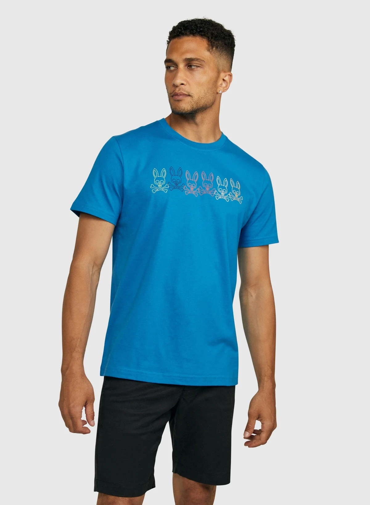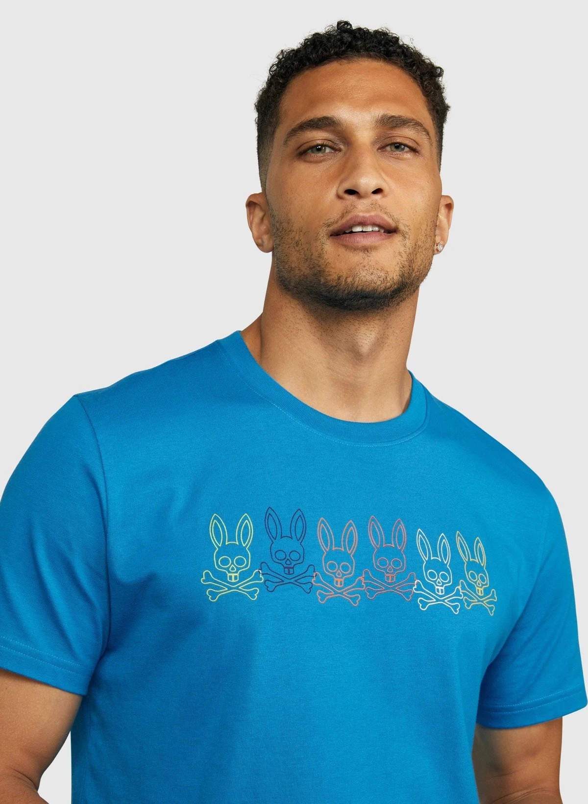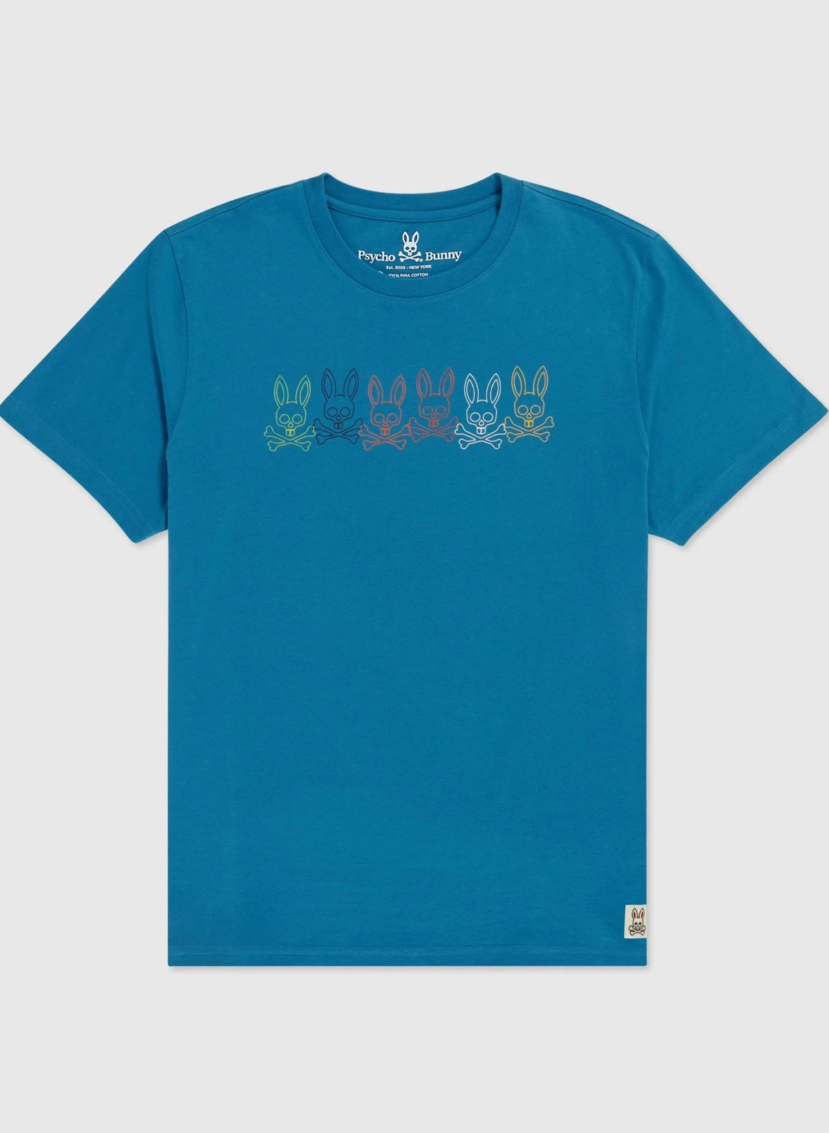Sport your colors with our mens Barbon graphic tee. The Barbon graphic tee is crafted from only the softest Pima cotton and cut with a trim fit that hits the sweet spot between classic and slim. Taped seams in the shoulders ensure the Barbon never loses that perfect fit. The Barbon tee features a high-density print multicolor Psycho Bunny graphic on the chest, making it perfect for fall layering.