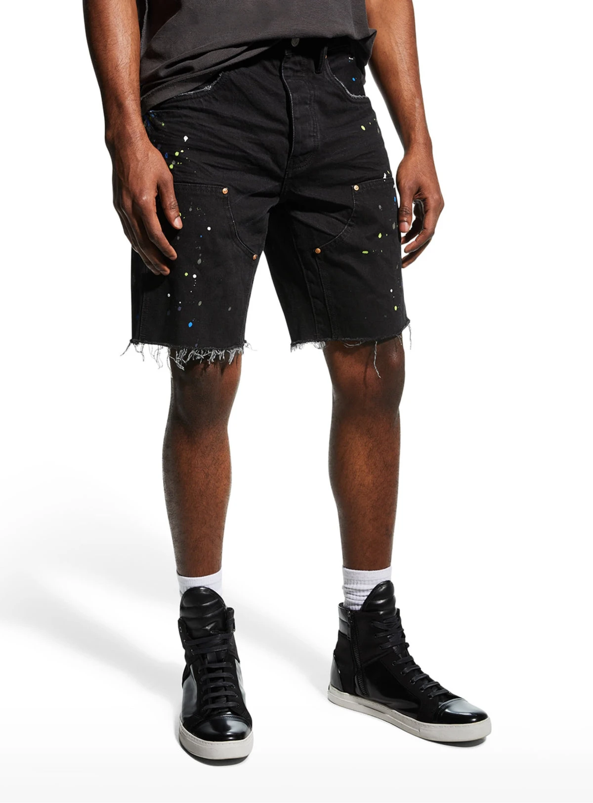 Purple-Brand Jean Shorts – Carpenter Paint Splatter – P020