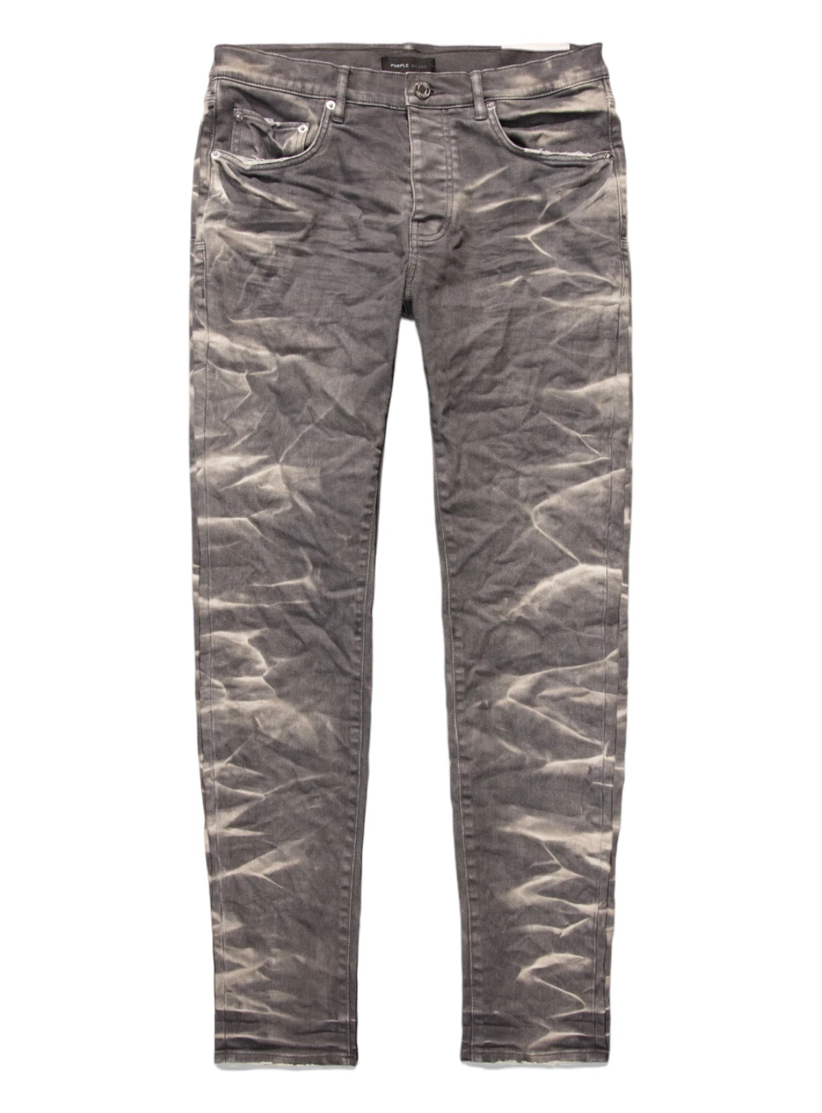 Crafted from premium stretch denim, this classic low rise skinny comes in a charcoal wash, faded by hand to create a crinkle effect. The style is detailed with bar-tack stitching and hidden rivets for added durability, a button fly closure, chambray lining for a more comfortable fit, a custom Purple cowhide leather patch and signature hang tag branding.
