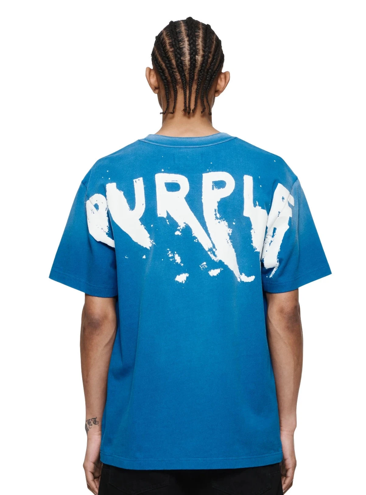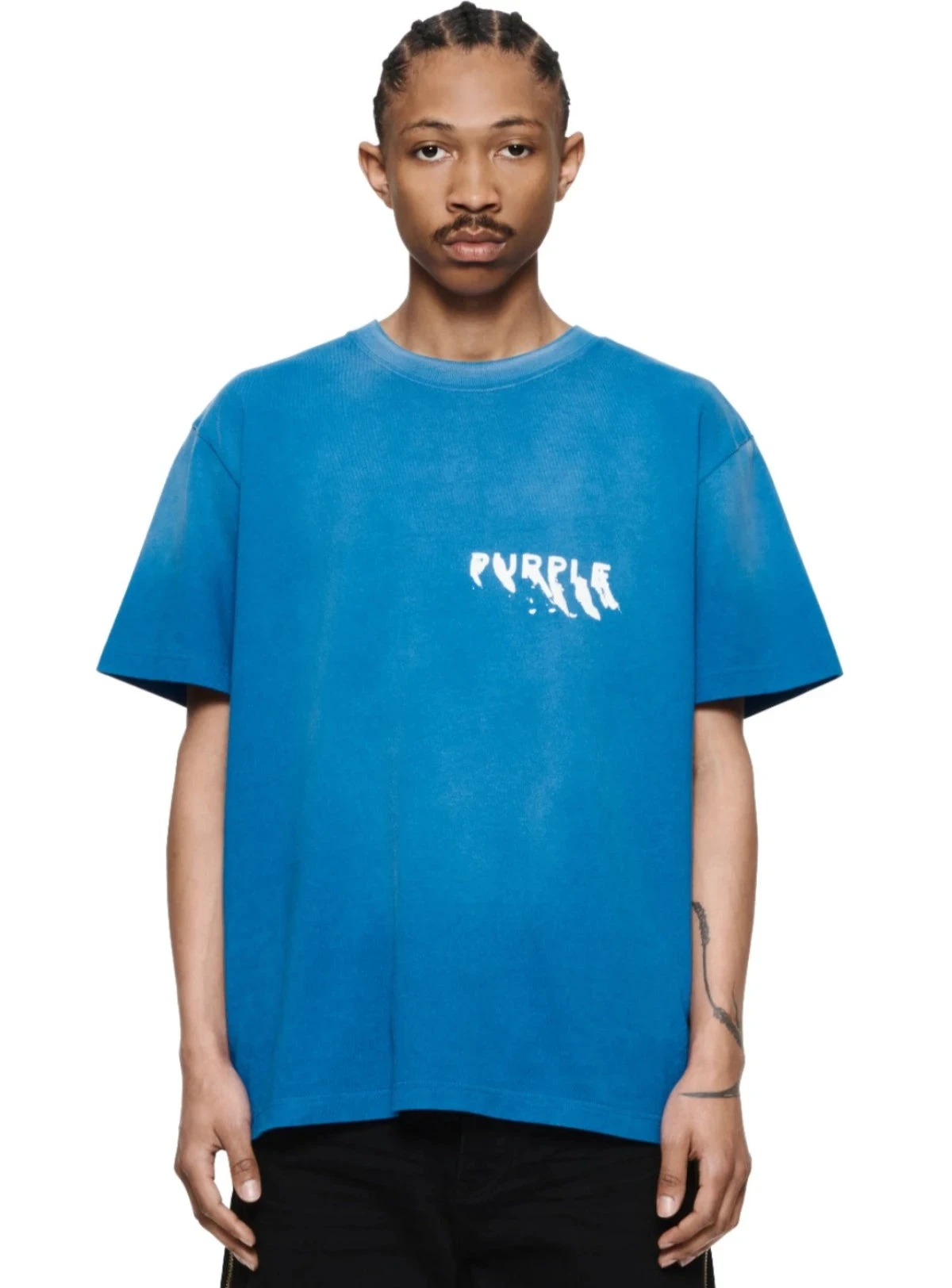 This short-sleeved tee is a premium blue jersey knit cut from 100% cotton. This heavyweight style features Purple Brand logo lettering at the chest. It’s tailored to a relaxed fit for elevated comfort and comes finished with a classic crewneck collar.